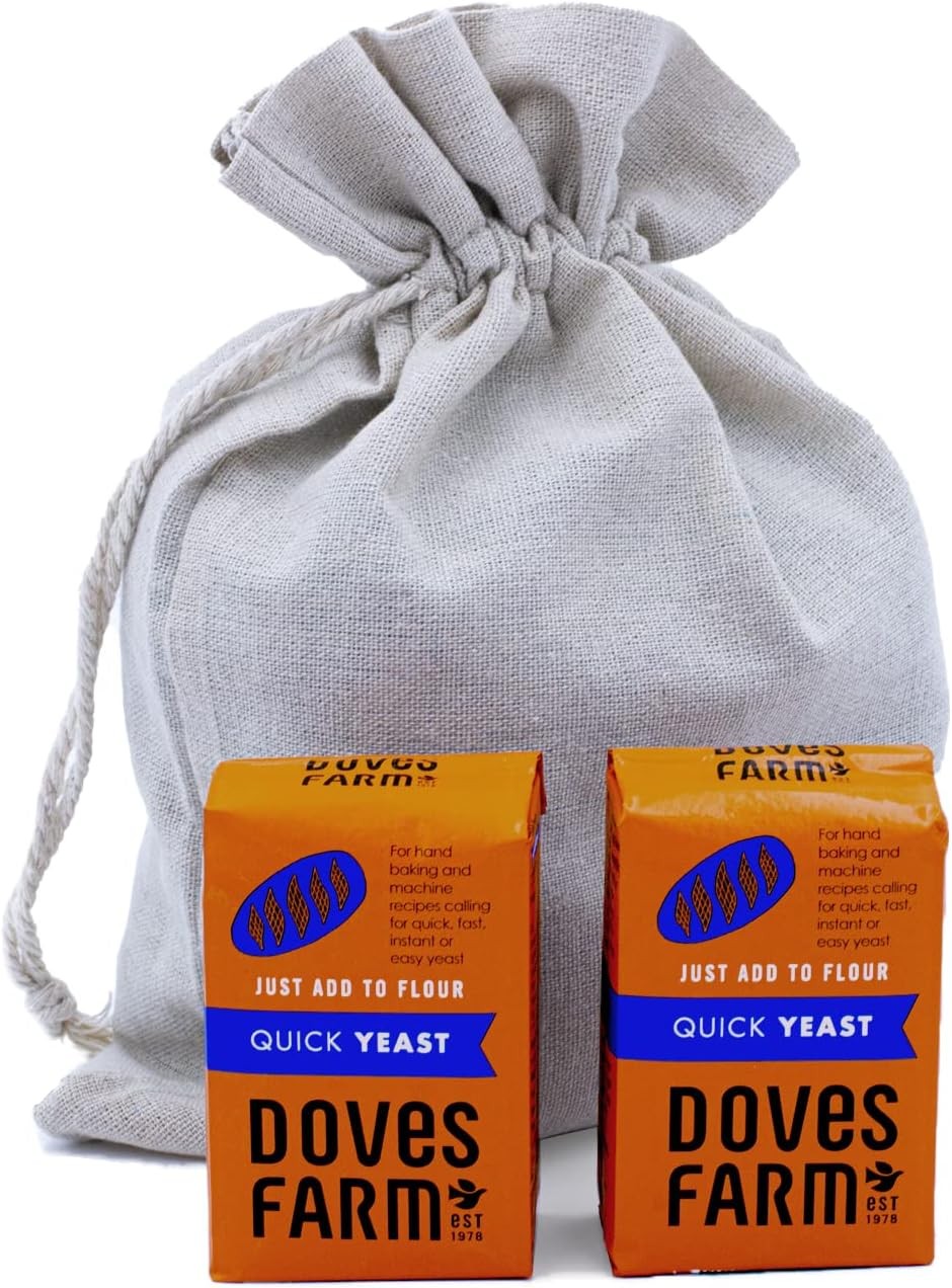 2 x 125g Doves Farm Gluten Free Instant Dry Yeast For Bread Making + 22x30cm Li