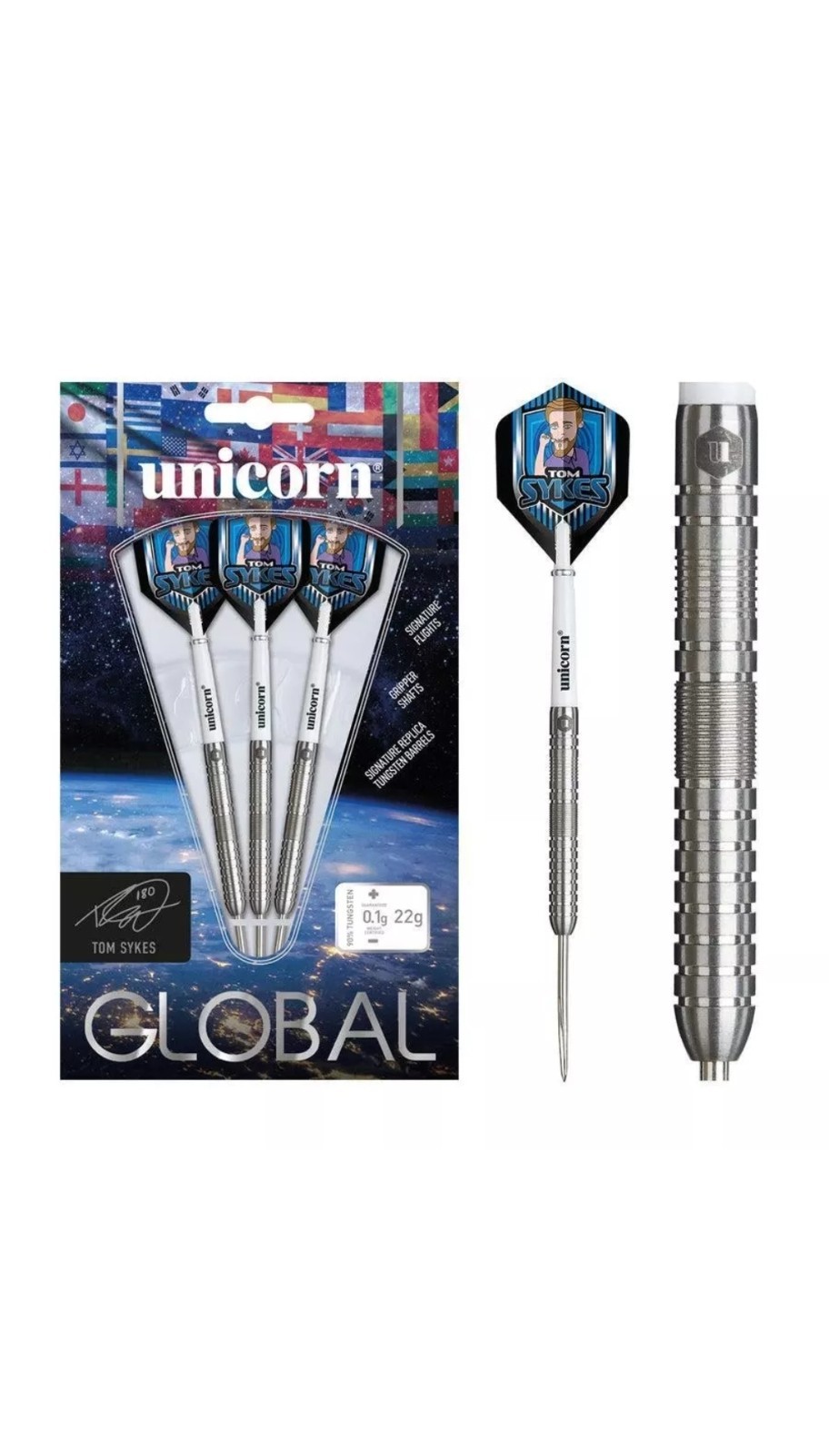 Unicorn Tom Sykes Global 90% Tungsten Steel Tip Darts - 22g