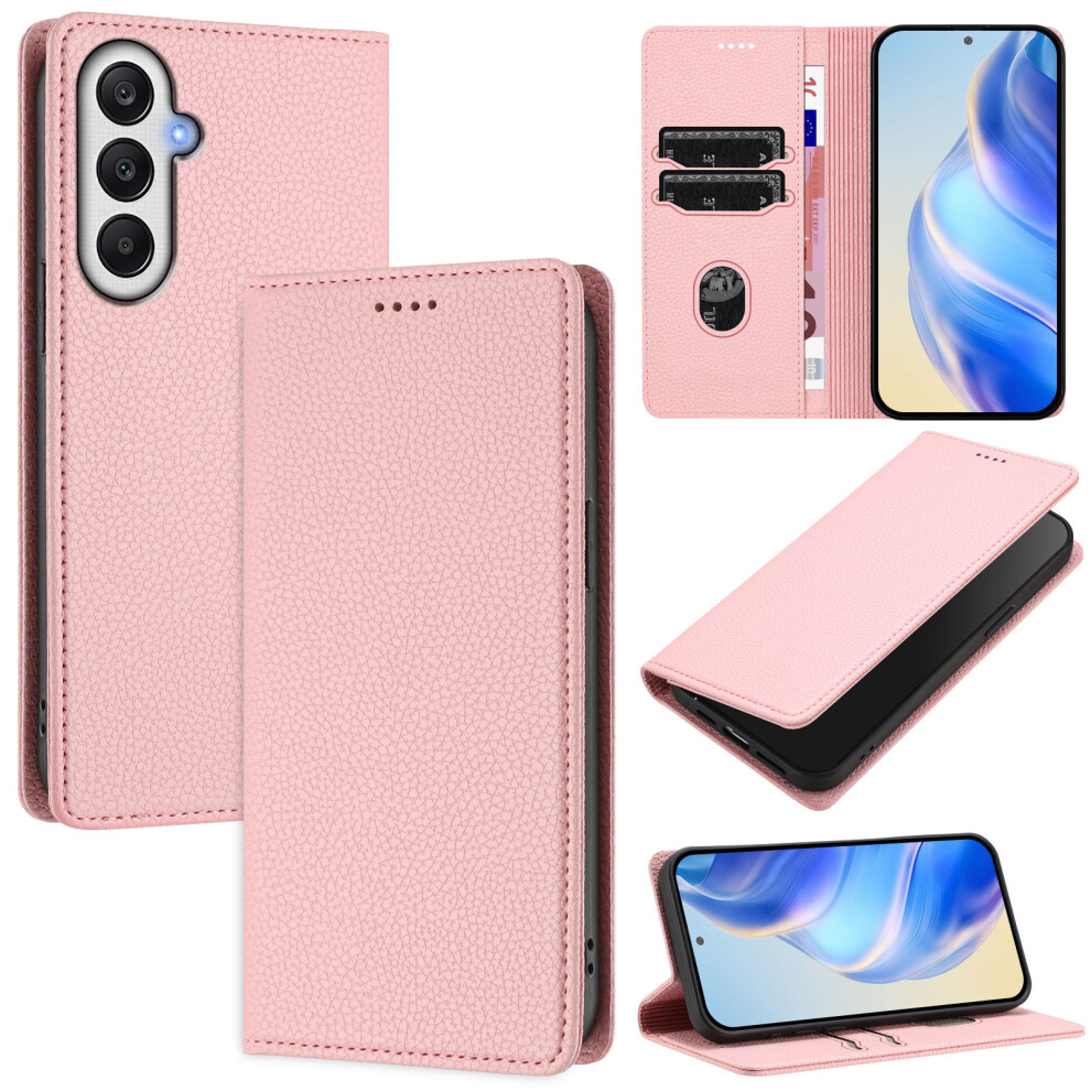 (Pink) For Samsung Galaxy A25 5G (Global) (161.0 x 76.5 x 8.3mm) Wallet Case RFID Blocking Litchi Texture Leather Mobile Cover