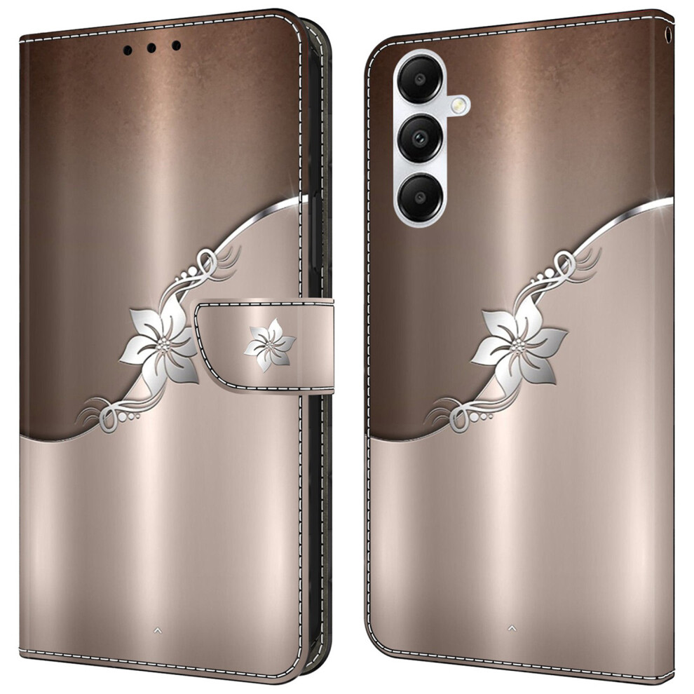 (Silver Flower) For Samsung Galaxy A25 5G (Global) (161.0 x 76.5 x 8.3mm) Case Printed 3D Pattern Leather Phone Cover