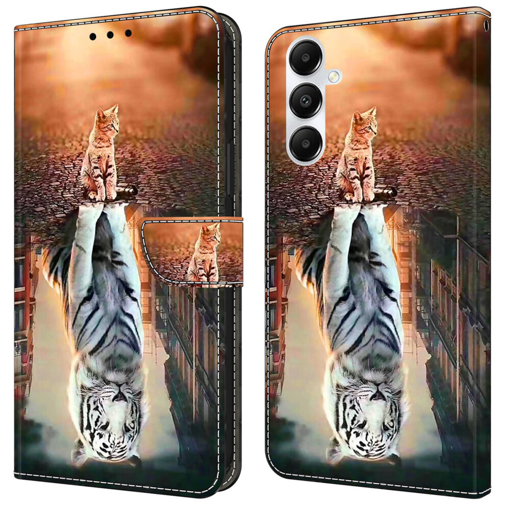 (Cat and Tiger) For Samsung Galaxy A25 5G (Global) (161.0 x 76.5 x 8.3mm) Case Printed 3D Pattern Leather Phone Cover