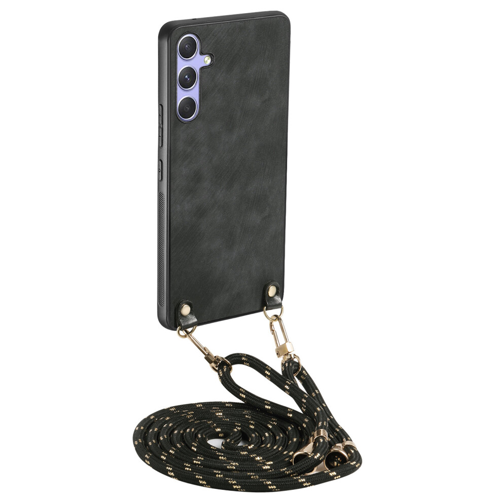 (Black) For Samsung Galaxy A25 5G (Global) (161.0 x 76.5 x 8.3mm) Retro Leather Phone Back Cover with Adjustable Strap