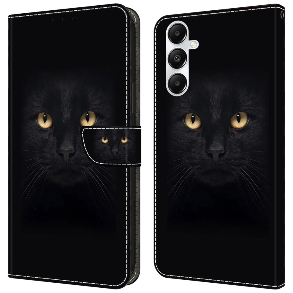 (Black Cat) For Samsung Galaxy A25 5G (Global) (161.0 x 76.5 x 8.3mm) Case Printed 3D Pattern Leather Phone Cover