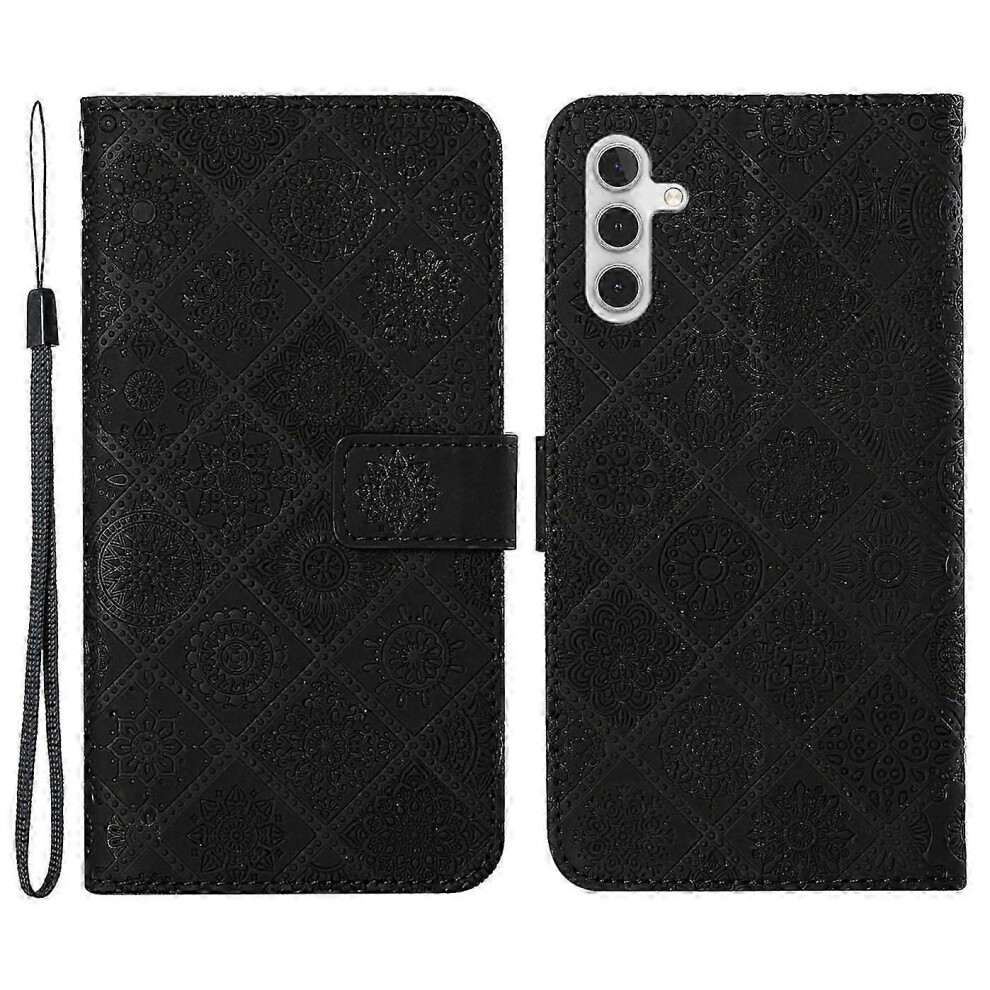 (Black, One size) For Samsung Galaxy A25 5g (global) (161.0 X 76.5 X 8.3mm) Wallet Case Leather+tpu Ethnic Style Cover