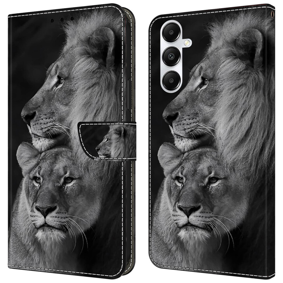 (Couple Lions) For Samsung Galaxy A25 5G (Global) (161.0 x 76.5 x 8.3mm) Case Printed 3D Pattern Leather Phone Cover