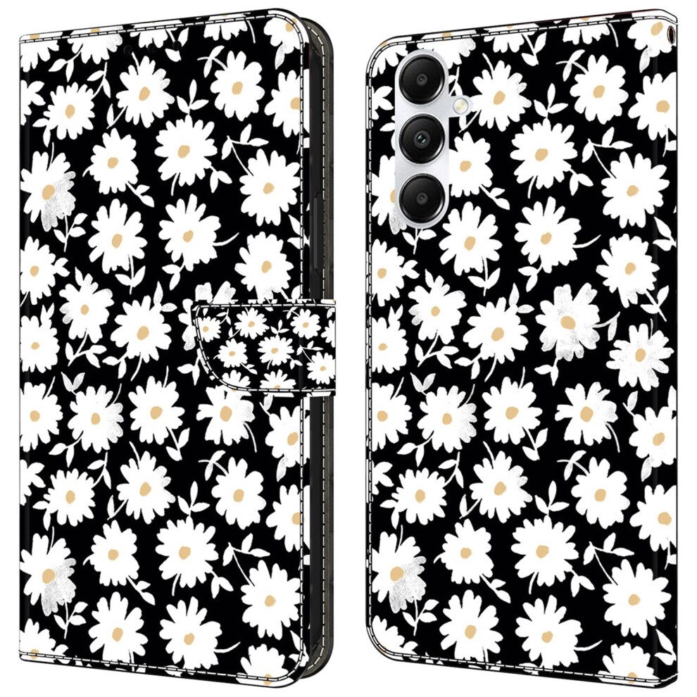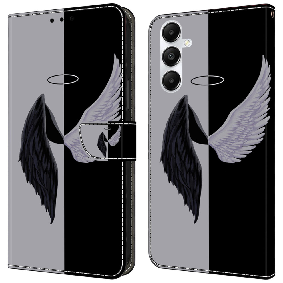 (Black White Wings) For Samsung Galaxy A25 5G (Global) (161.0 x 76.5 x 8.3mm) Case Printed 3D Pattern Leather Phone Cover