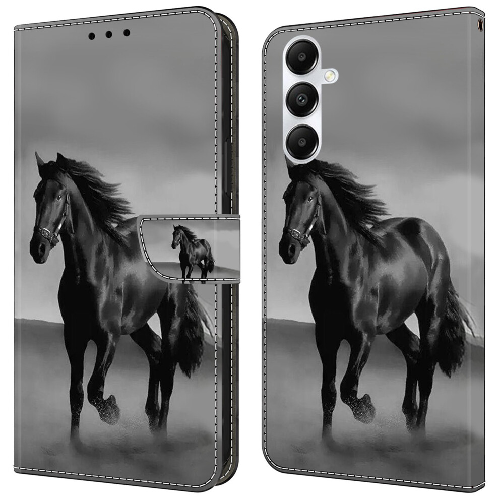 (Black Horse) For Samsung Galaxy A25 5G (Global) (161.0 x 76.5 x 8.3mm) Case Printed 3D Pattern Leather Phone Cover