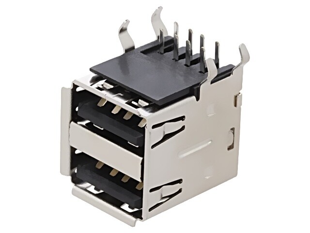 2X USB1040-GF-L-B Socket USB A THT PIN: 4 Vertical USB 2.0 1.5A Global Connector