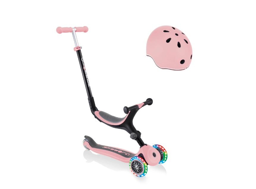 Globber Go Up Foldable Lights Kids Scooter Pastel Pink with Helmet
