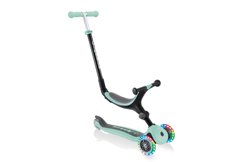 Globber Go Up Sporty Lights Kids Scooter Toddler Ride On - Removable Seat - 2 Year Warranty (Mint Green)