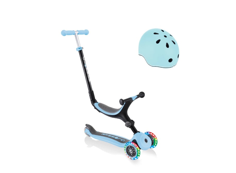 Globber Go Up Foldable Lights Kids Scooter Pastel Blue with Helmet