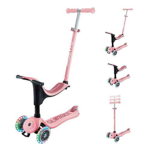 Globber Go Up Sporty Lights Kids Scooter Toddler Ride On - Removable Seat - 2 Year Warranty (Pastel Pink)