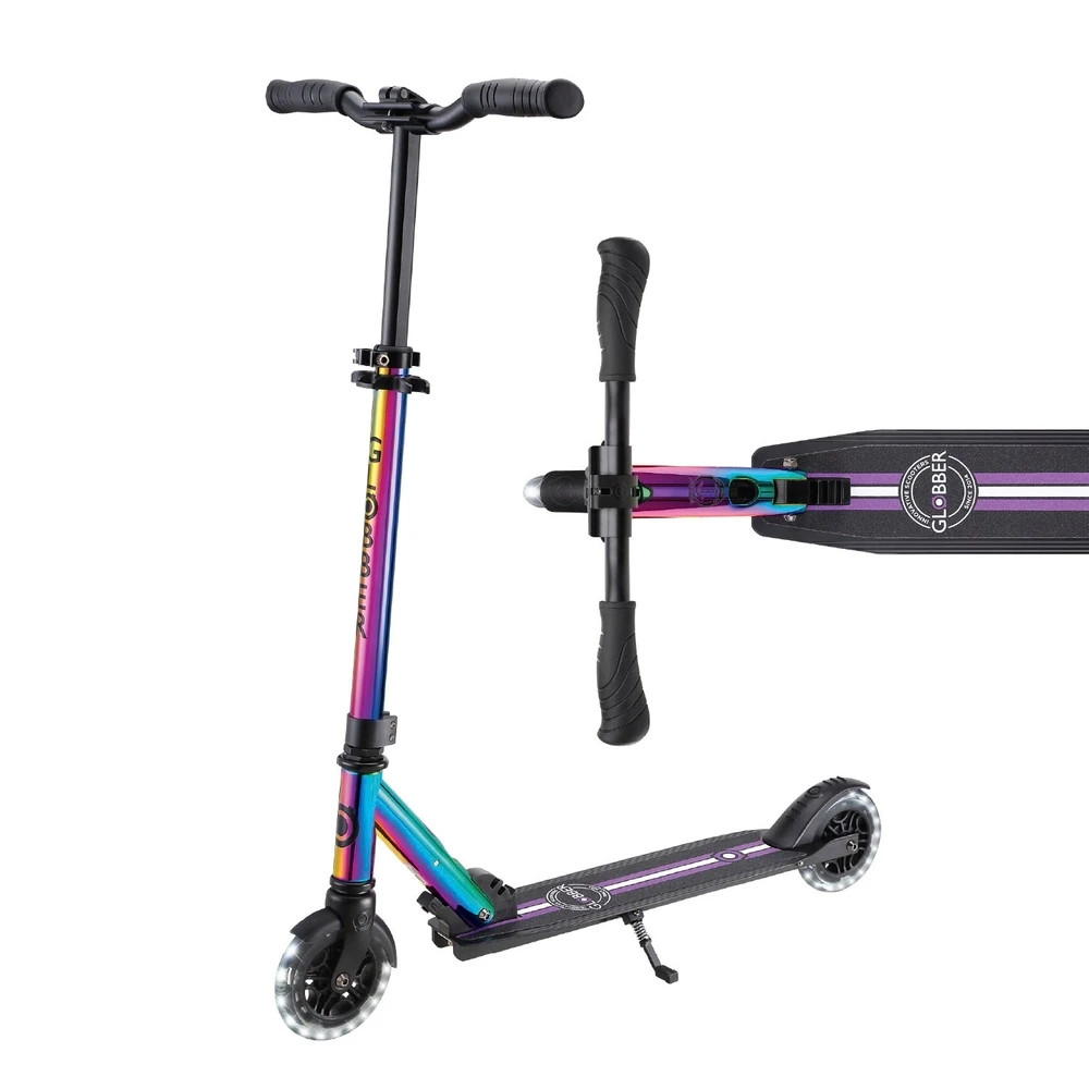 Globber Flow Element Lights Folding Scooter Adjustable Neo Chrome