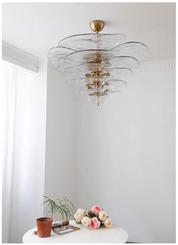 QHGJNG Modern Chandelier Art Deco Glass Stainless Steel G9 LED 2025 Chandelier Lighting Hanging Lamps Suspension Luminaire Lampen for Living Room(Warm Light 80cm Clear)