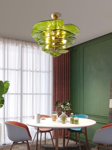 QHGJNG Modern Chandelier Art Deco Glass Stainless Steel G9 LED 2025 Chandelier Lighting Hanging Lamps Suspension Luminaire Lampen for Living Room(Neutral Light 80cm Green)
