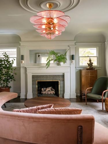 QHGJNG Modern Chandelier Art Deco Glass Stainless Steel G9 LED 2025 Chandelier Lighting Hanging Lamps Suspension Luminaire Lampen for Living Room(Neutral Light 65cm Pink)