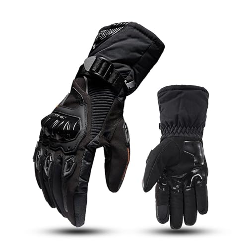 IRON JIA'S Winter Motorbike Gloves Mens,Warm Winter Motorcycle Gloves,Waterproof,Touchscreen Winter Gloves with Ankle Protection,for Winter Outdoor Sports,Motorcycle,Skiing Black XL
