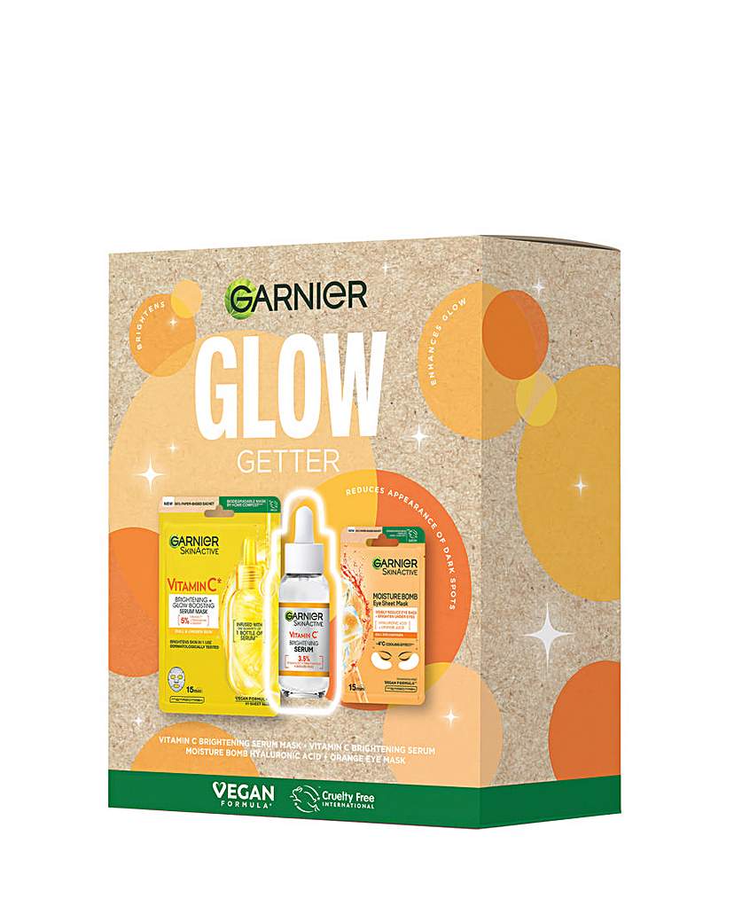 Garnier Vitamin C Glow Getter Giftset - Brightens Skin, Reduces Dark Spots & Evens Skin Tone - For Dull Skin - Cruelty Free & Vegan - Pack of 30ml Face Serum, Face Sheet Mask & Eye Sheet Mask