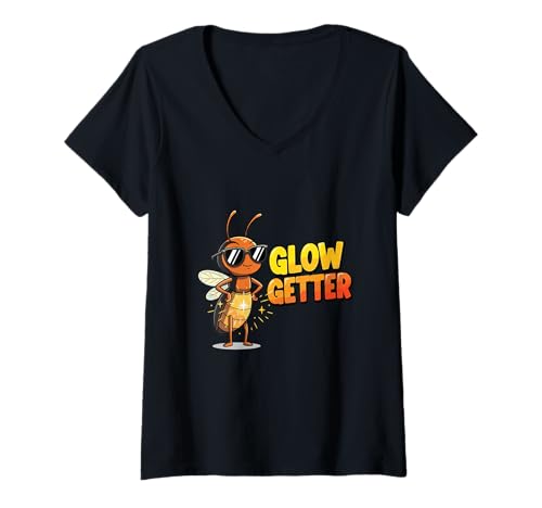 Womens Glow Getter Cool Firefly Motivation V-Neck T-Shirt