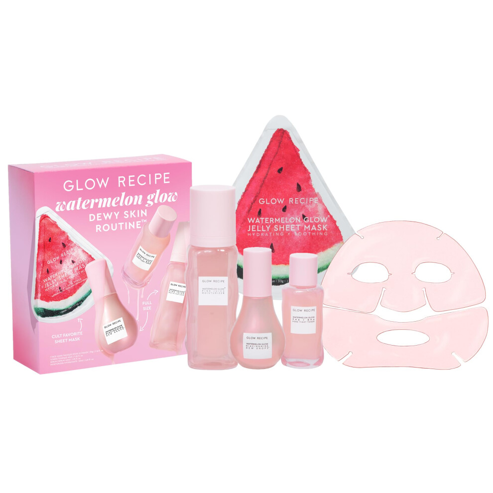 Glow Recipe Watermelon Glow Dewy Skin Routine Kit - Full Size Dew Drops Serum, Full Size Pink Juice Moisturizer, Travel Size PHA+BHA Pore-Tight Toner