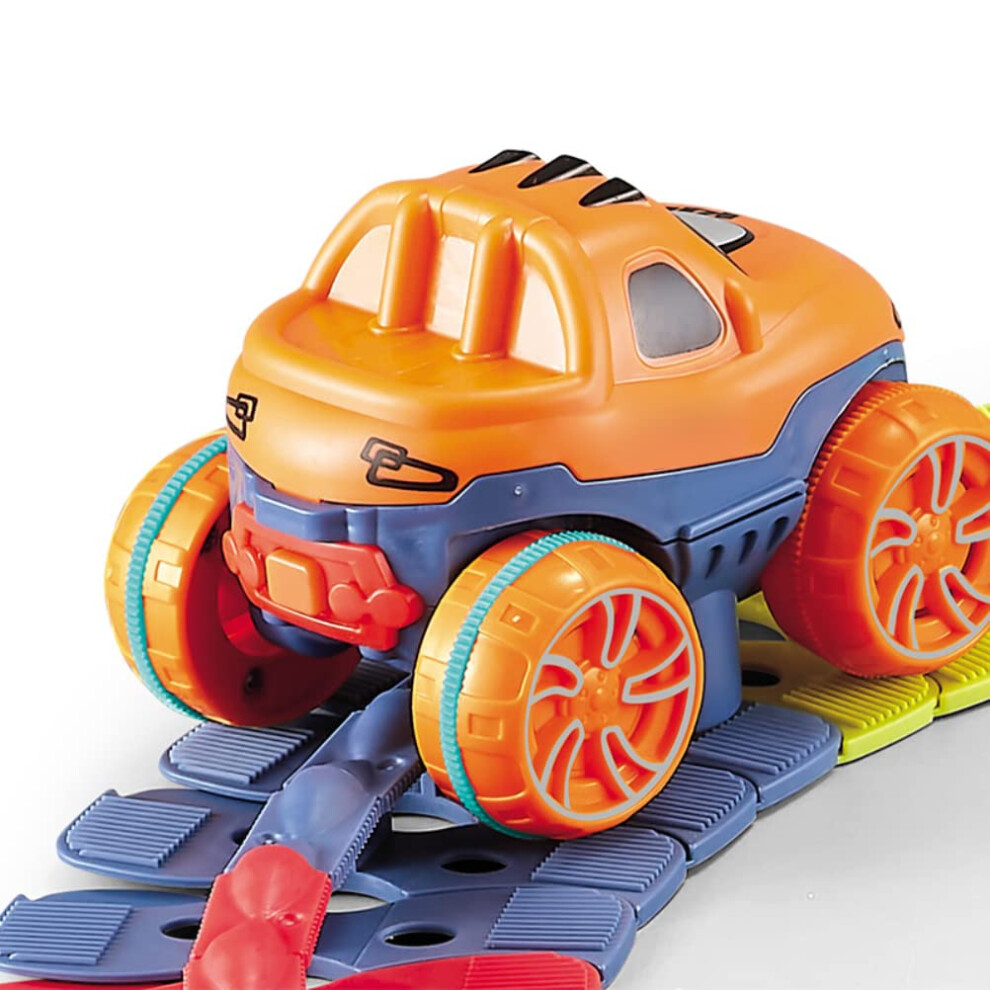 LED Race Car Trackset with Glow in the Dark Features, Interchangeable Neon Car Tracks Creative Educational Building Kit for Kids Ages 3-8