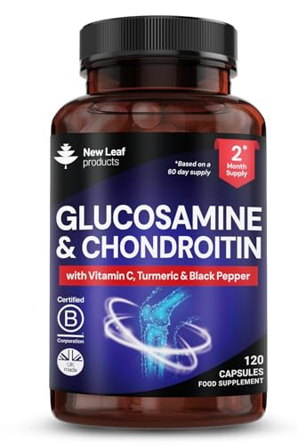 Glucosamine and Chondroitin High Strength - Enriched With Turmeric And Vitamin C - Glucosamine Sulphate Chondroitin Sulphate, Food Supplement - Contributes To The Normal Function of Bones 120 Capsules