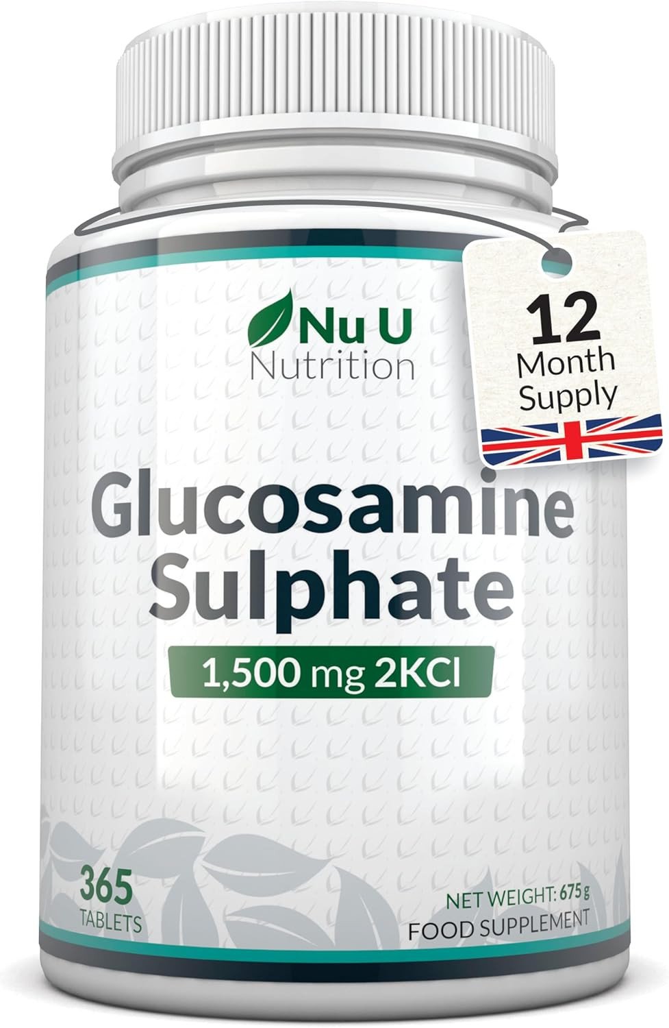 Glucosamine Sulphate 2KCl 1500mg - 365 Tablets - 1 Year Supply - High Strength Glucosamine Tablets - Joint Supplements for Men & Women - Made in The UK - Nu U Nutrition