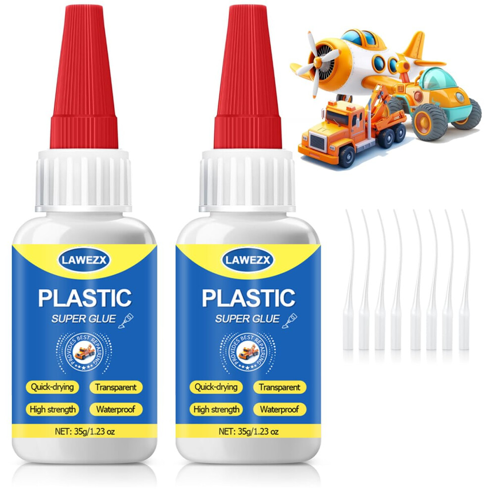 LAWEZX Plastic Glue 35g, Super Glue for Plastic Repair, Heavy Duty Instant Adhesive - Clear, Waterproof, Heat Resistant, Adhesive for 3D Printing, Acrylic, Toys, Models, ABS, PVC, PLA, DIY Kits (2Pcs)