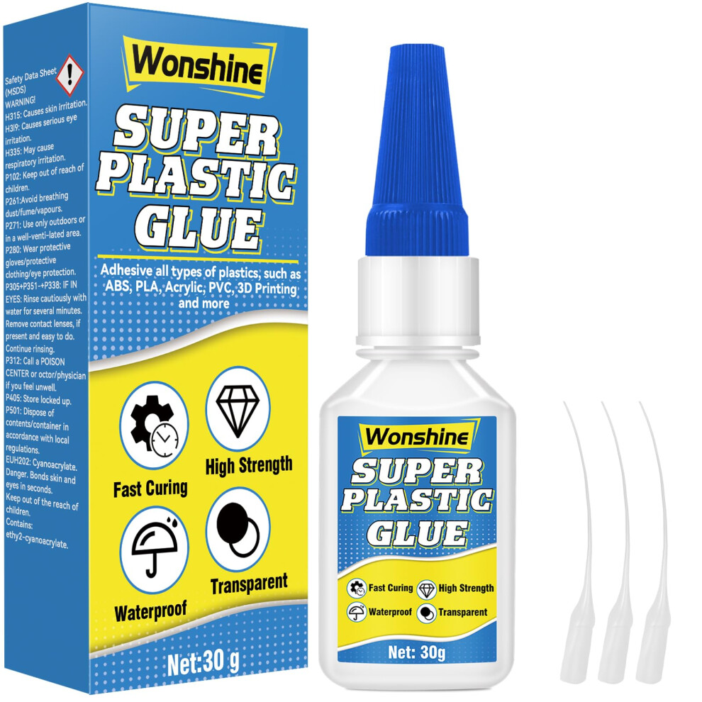 Plastic Glue, Waterproof and Heat-Resistant Strong Glue for Plastic, Superglue for Bonding Glass, Vinyl, Acrylic, PVC, Metal, etc. (30g)