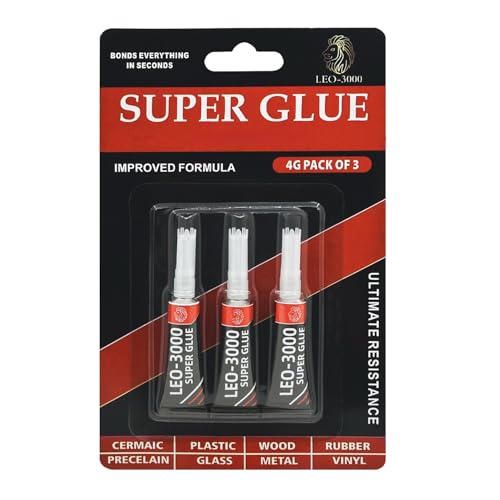 Super Glue 3 Pack (4g) All Purpose Super Glue |Strong Adhesive for Plastic, Metal, Rubber, Leather | Quick-Dry, Waterproof, Crack-Resistant | Precision Nozzle for DIY, Home, Auto, Instant Bond Repairs