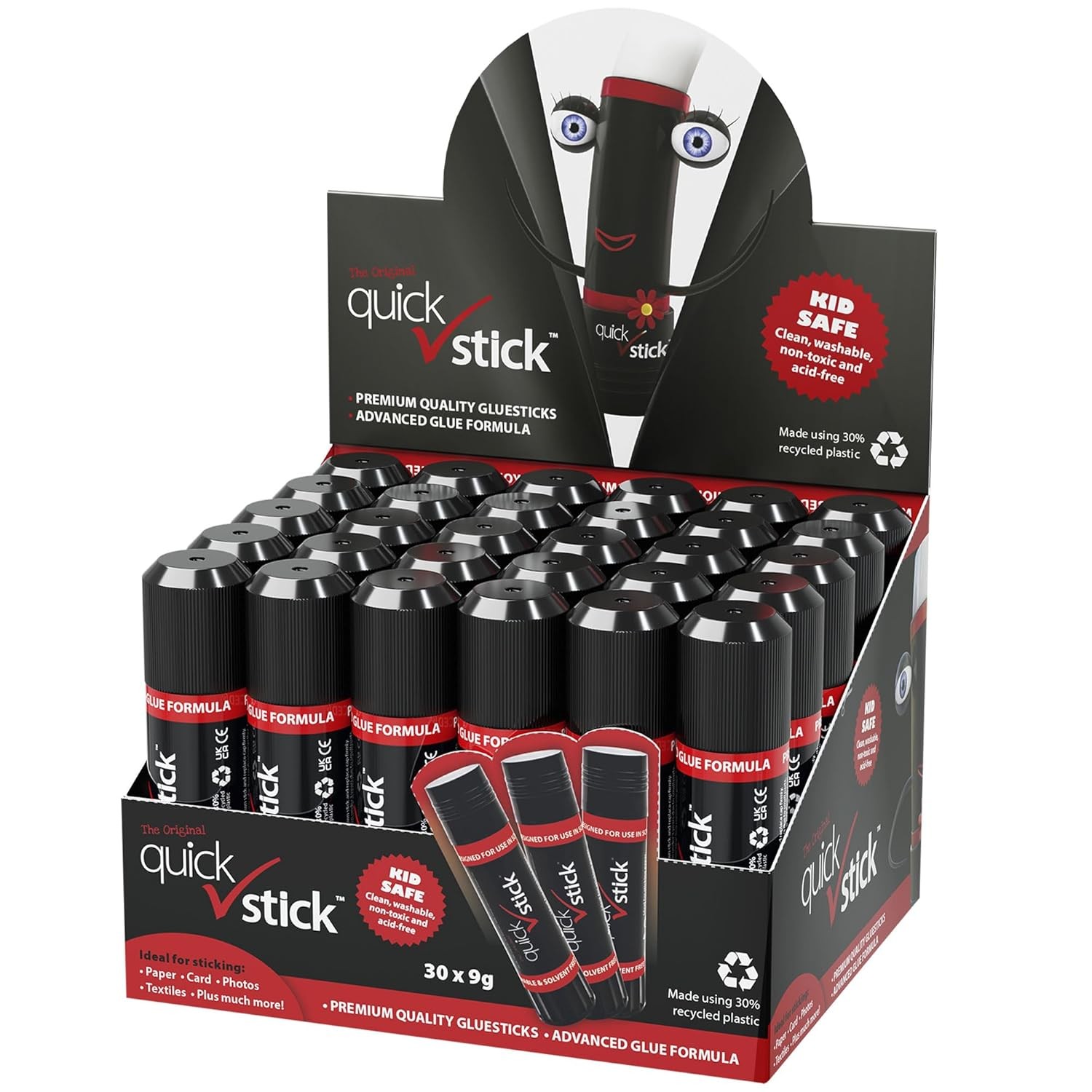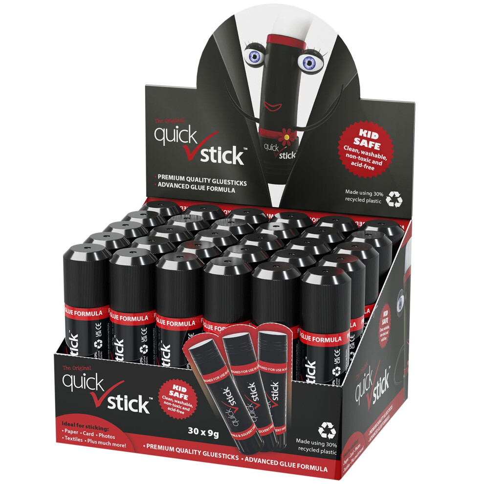 Quick Stick Glue Sticks Original 9g, Pack of 30 Glue Sticks, Quality Adhesive Gluestick, Ideal Strong-hold for Paper, Card, Textiles, Crafting Glue, Scrapbooking, Office & School supplies, Homeschool