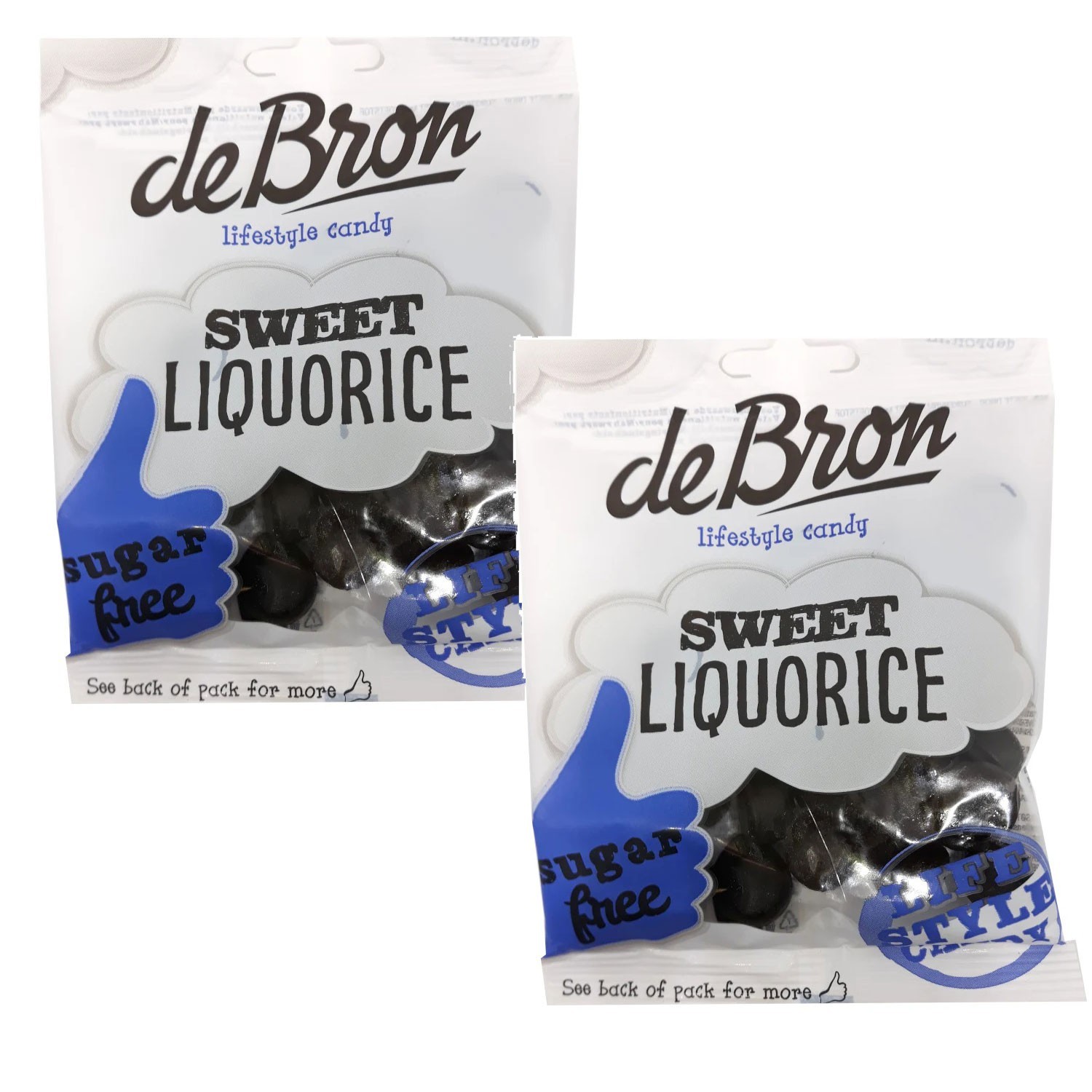De Bron Sugar Free Sweet Liquorice 2 x 100g Bags - Gluten Free, Less Calories
