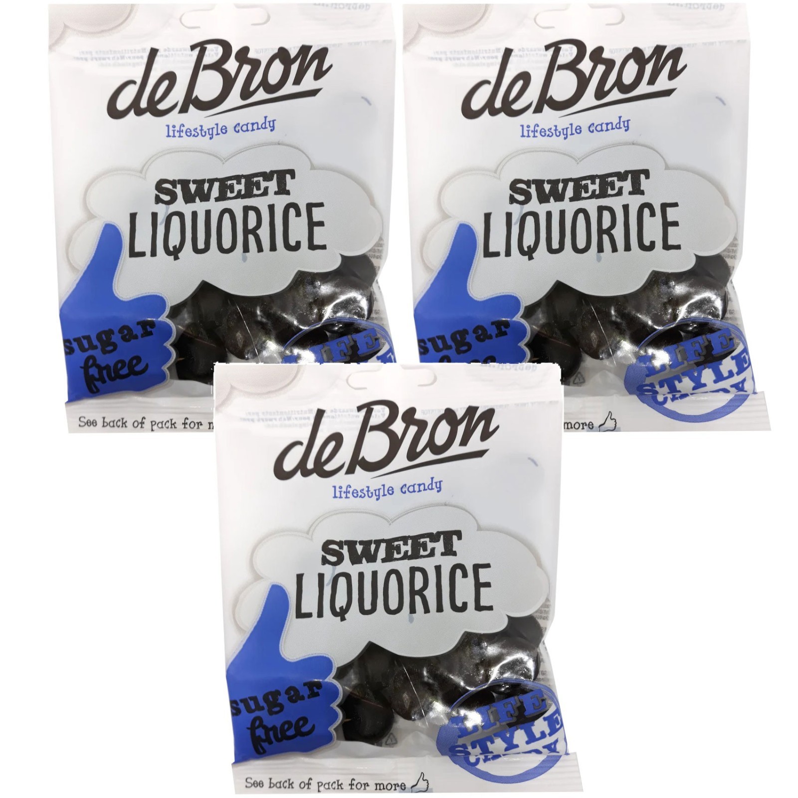 De Bron Sugar Free Sweet Liquorice 3 x 100g Bags - Gluten Free, Less Calories