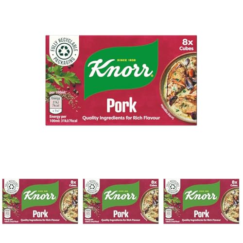 Knorr Pork Stock Cubes gluten-free to add a rich pork flavour to your dishes 8x 10 g (Pack of 4)