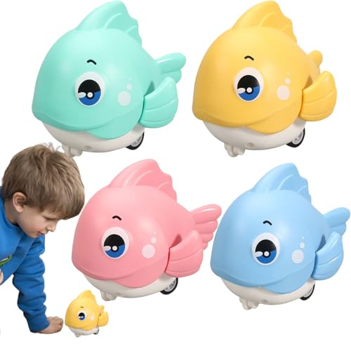 Fish Toy Car For | 4x Push And Go Cartoon Fish Toys,Fun Interactive Cute Sea Animal Playset, Parent-Child Games For Boys, Girls