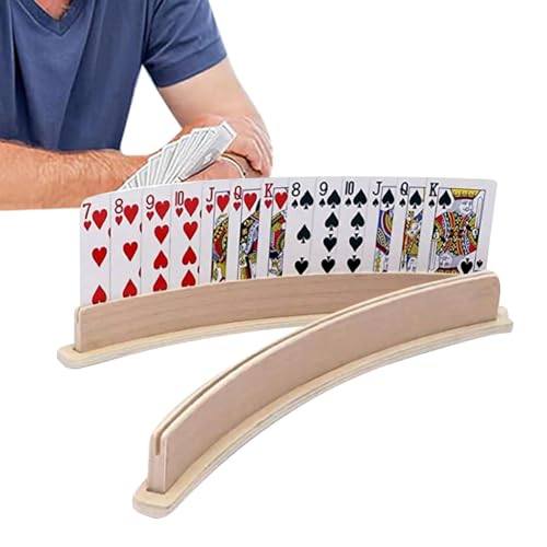 SUMNACON 4Pcs Playing Cards Holders 13" Playing Card Holder Stand Curved Wood Card Organizer for Adults, Seniors Card Game Accessories for Bridge, Go Fish, Uno