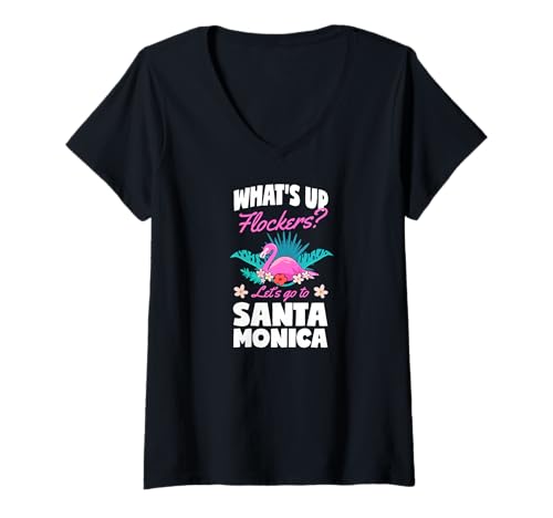 Women's What's Up Flockers Let's Go to Santa Monica Flamingo Love V-Neck T-Shirt