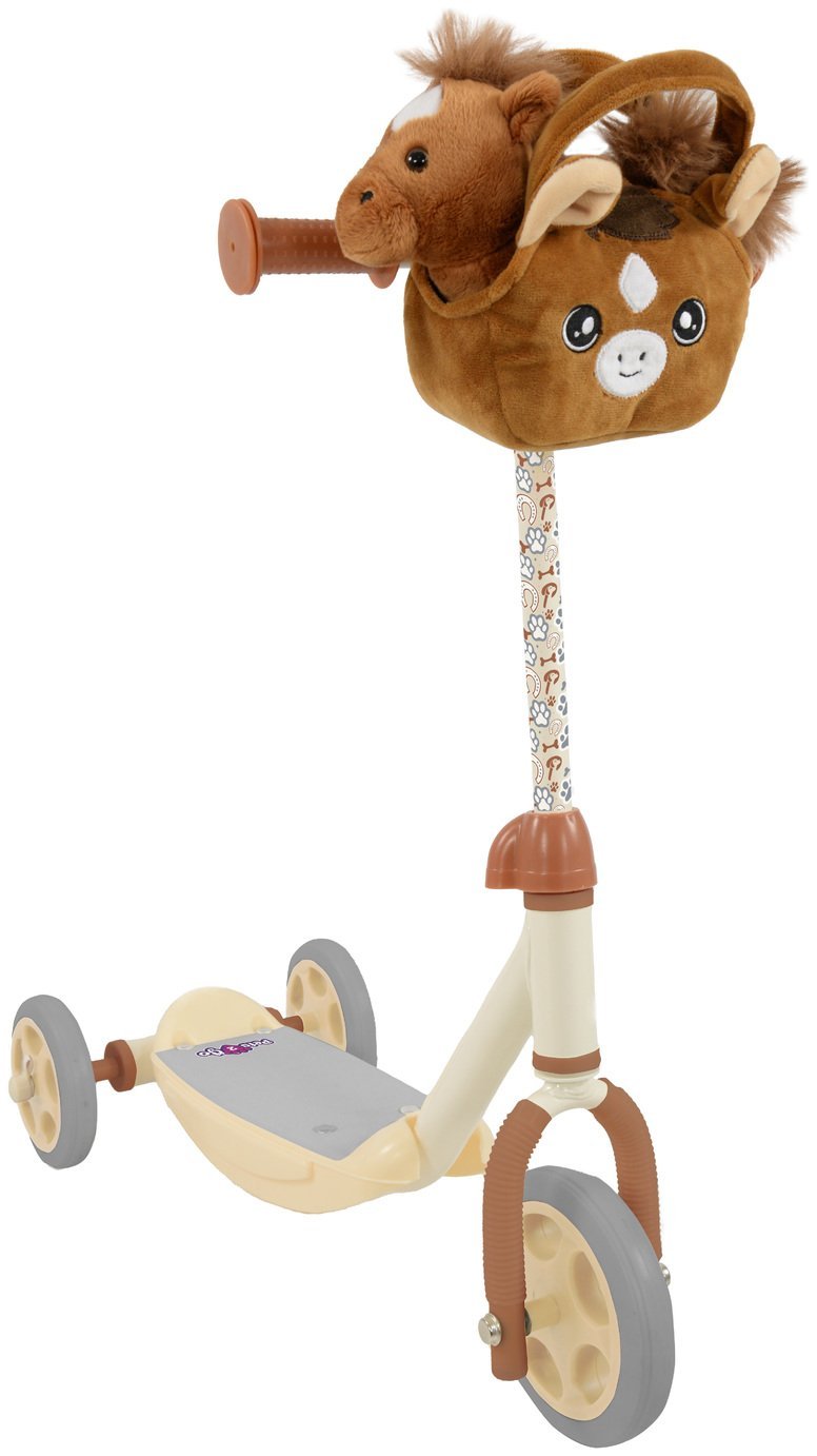 MoVe Pets 2 Go! Cream & Brown Tri Scooter with Pony Pal | Horse 3 Wheels Kids Age 3+ Push Along | Girls or Boys Pets2Go