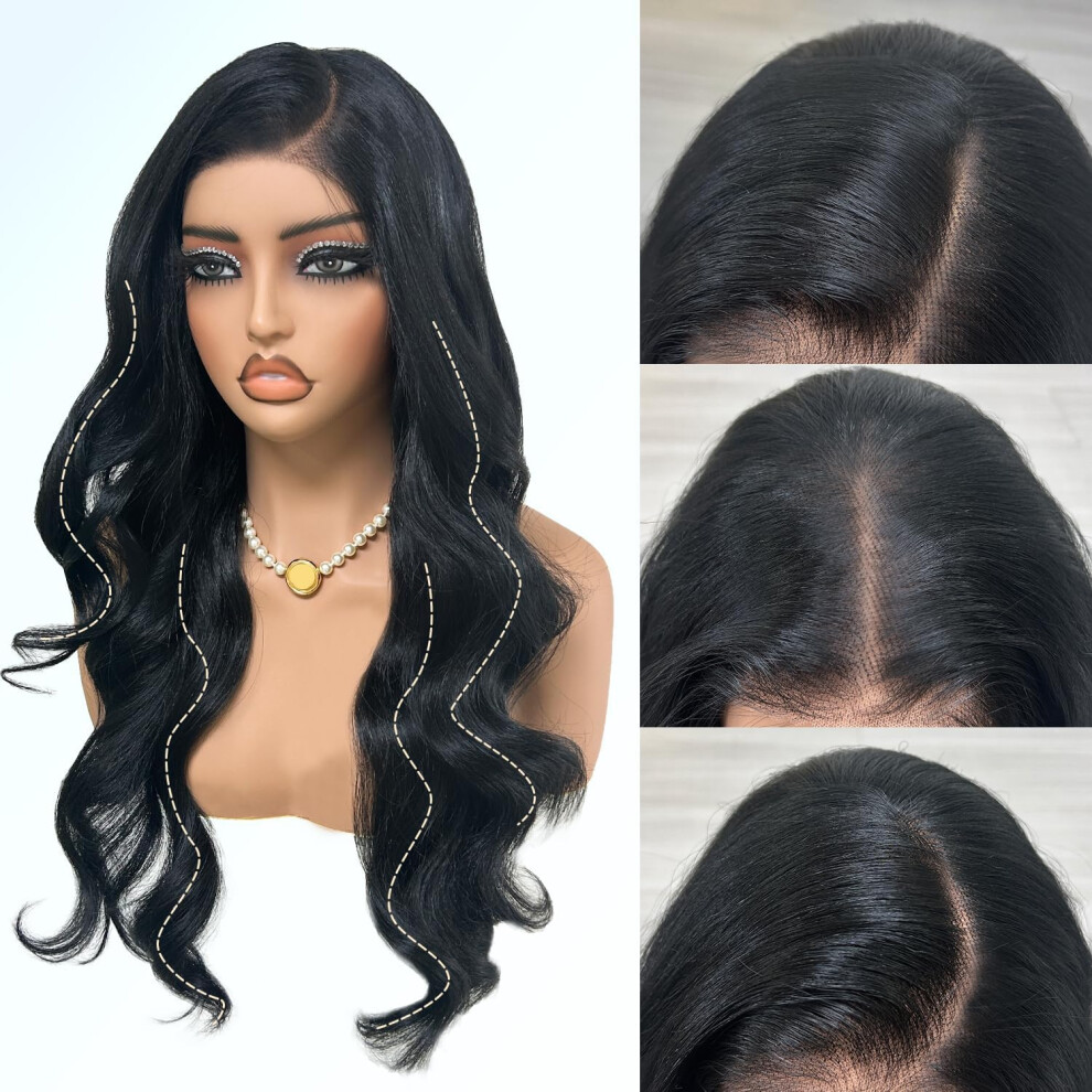 Lace Front Wig 6x5 Wear and Go Glueless Body Wave Synthetic lace front Wigs 26Inch Pre Plucked Pre Cut HD Lace Frontal Wig With Baby Hair (1B#