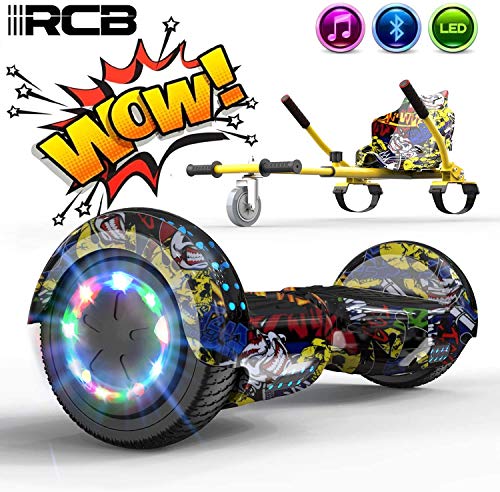 RCB Hoverboards with Go Kart Seat Bundle for Kids Segways Built in LED lights Bluetooth Speaker Hoverboards, Gift for Kids and Adult