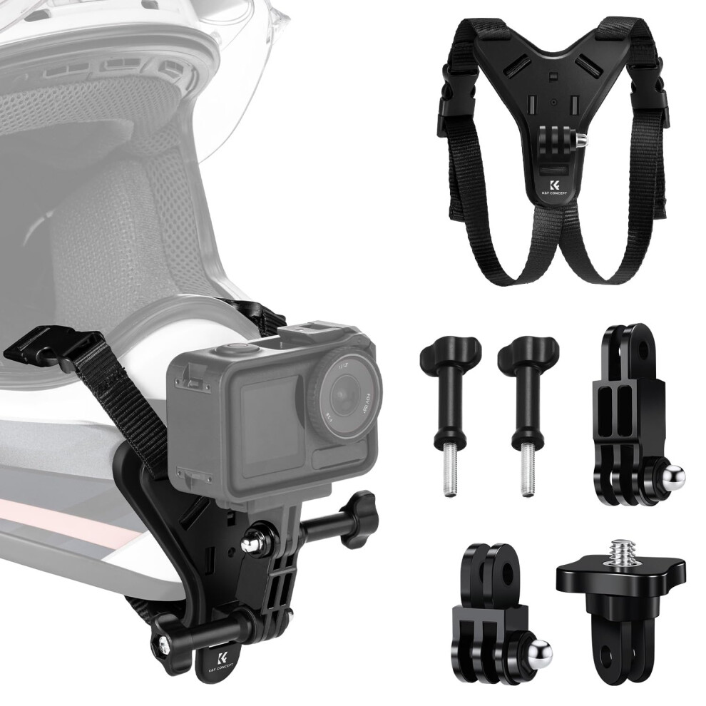 K&F CONCEPT Motorcycle Helmet Chin Mount Strap Compatible with GoPro Hero 13, 12, 11, Insta 360 X5, ONE X3, DJI OSMO Action 5 Pro, Non-Slip Silicone,