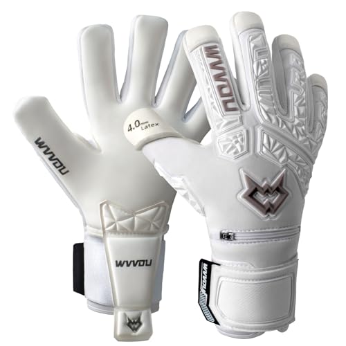 WVVOU Football Goalkeeper Gloves for Adults and Youth, High Performance Football Gloves with 5 Detachable Fingersave, Goalie Gloves with 4mm Sticky Latex Palm (White, 10)