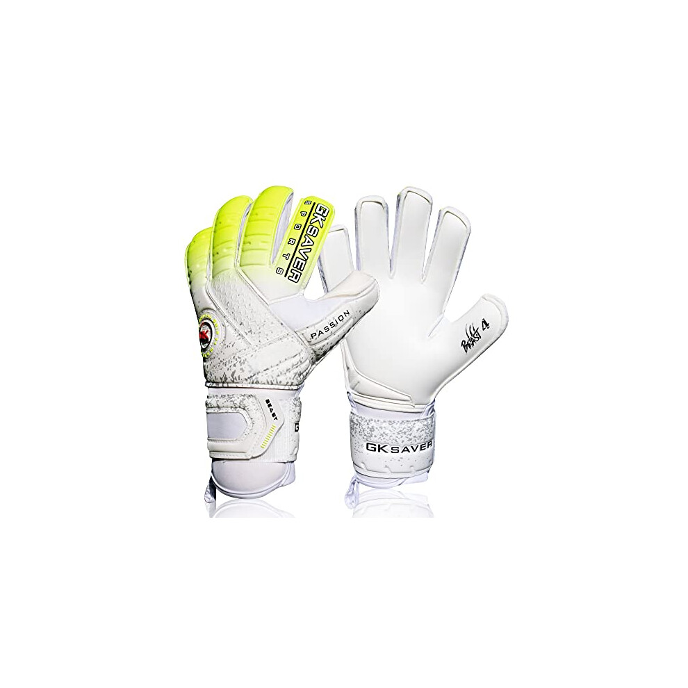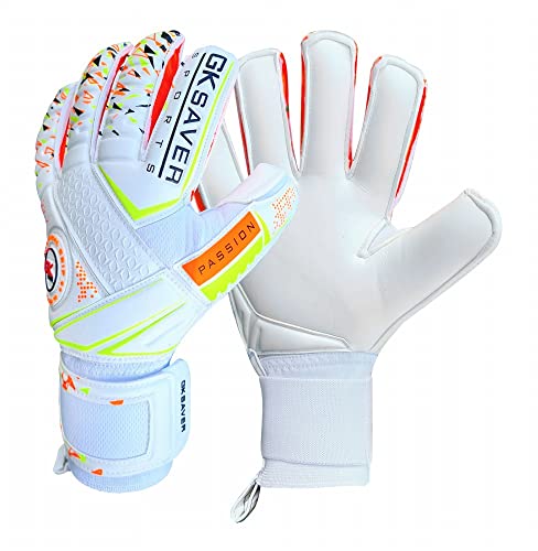 GK Saver football goalkeeper gloves Passion PS04 Flat cut professional goalie gloves size 6 to 11 removable finger save gloves (YES FINGERSAVE NO PERSONALIZATION, SIZE 10)