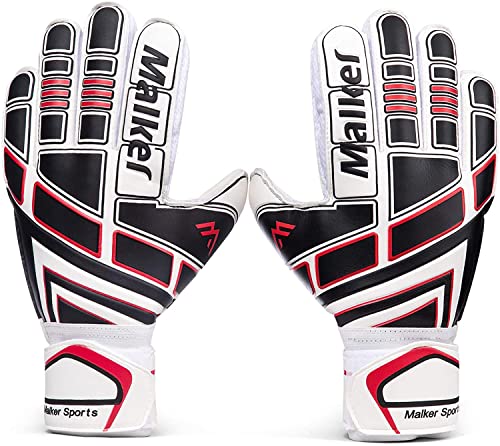 Malker Goalie Gloves with Fingersave and Double Wrist Protection, Strong Grip Goalkeeper Gloves for Youth & Adult