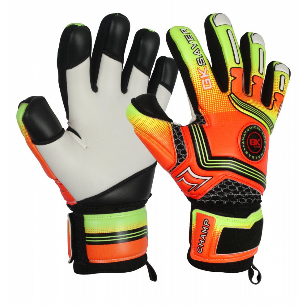 Football Goalkeeper Gloves Champ 01 Orange Negative Cut Goalie Gloves (NO FINGERSAVE/NO PERSONALIZATION, Size 6)