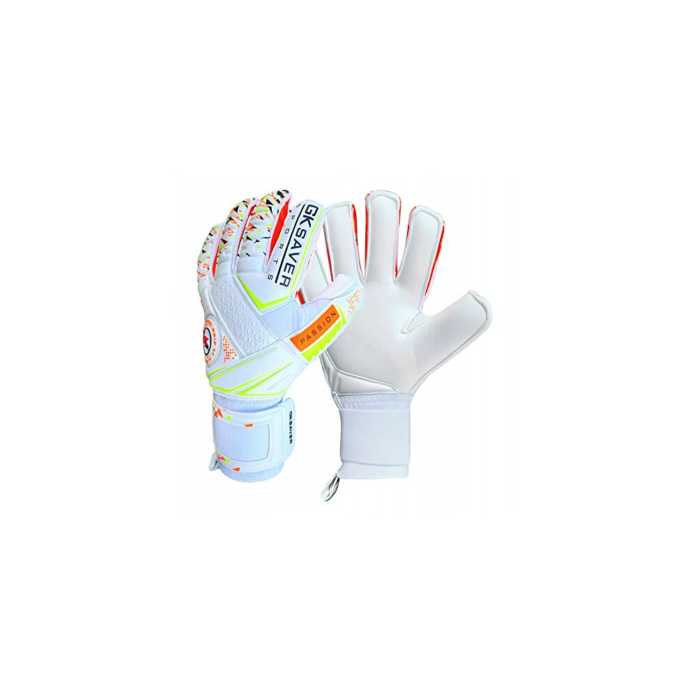 GK Saver football goalkeeper gloves Passion PS04 Flat cut professional goalie gloves size 6 to 11 removable finger save gloves (YES FINGERSAVE NO PERSONALIZATION, SIZE 8)