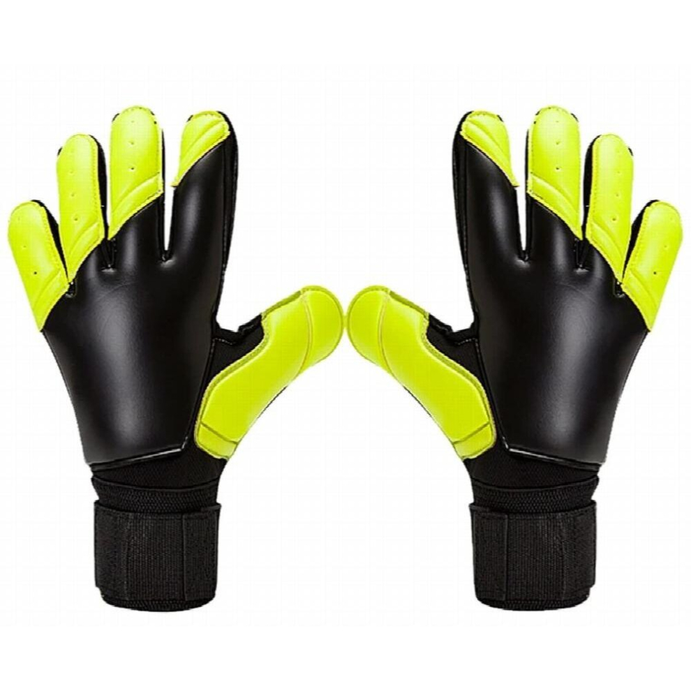 (Black-Size 10 5) All latex goalkeeper gloves has Fingersave Protection rods soccer football Goalie Gloves Kids Adults size 8 9 10