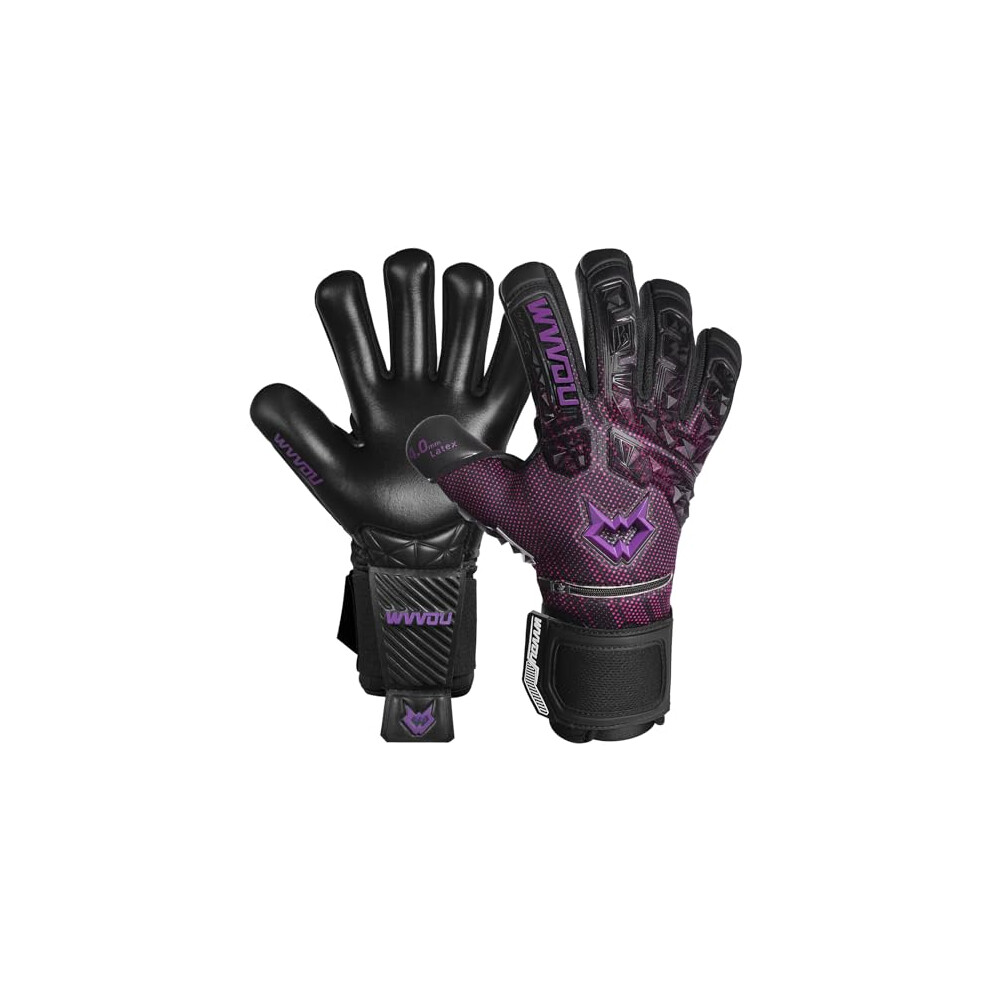 WVVOU Football Goalkeeper Gloves for Adults and Youth, High Performance with 5 Detachable Fingersave, Goalie Gloves with 4mm Sticky Latex Palm (Purple, 7)