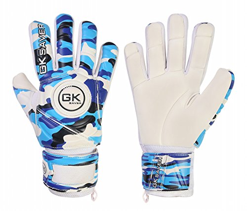GK Saver Football Goalkeeper Goalie Gloves Camo Blue Negative Cut Gk Gloves (YES FINGERSAVE NO PERSONALIZATION, SIZE 4)