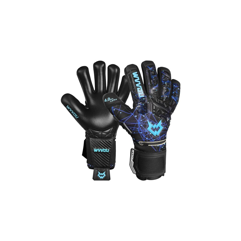 WVVOU Football Goalkeeper Gloves for Adults and Youth, High Performance Football Gloves with 5 Detachable Fingersave, Goalie Gloves with 4mm Sticky Latex Palm (Blue, 10)